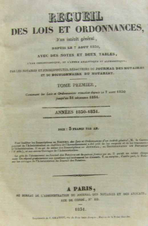 Bureau de l'administration du journal des notaires et des avocats 1831 in8. 1831. Relié.