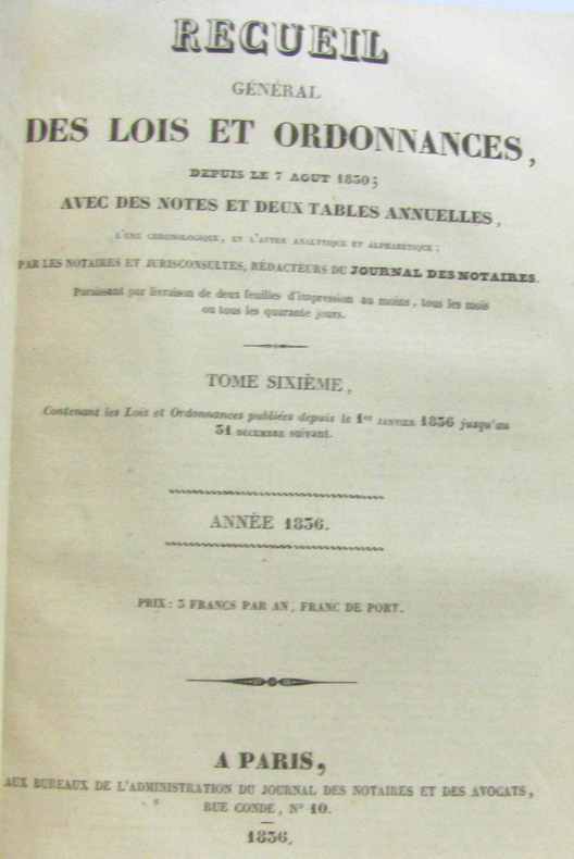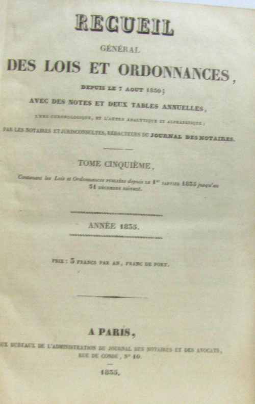 Bureau de l'administration du journal des notaires et des avocat 1835 in8. 1835. Relié. tome cinquième année 1835 + tome six année 1836(deux tomes compilés en un volume)