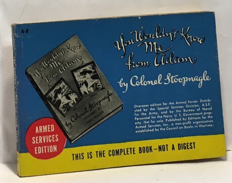 New York Armed Services Edition Collection n° R-8 1945 1 vol. broché in-12 oblong (100 x 140 mm), agrafé, couverture illustrée, 223 pp., dessins en noir, texte sur 2 colonnes. Texte en anglais. Dos passé et ridé, sinon bon exemplaire. La collection des Armed Services Editions (ASE), publiée de 1943 à 1946, présente des ouvrages en texte intégral mais compacts et légers à destination des soldats américains engagés dans la Seconde Guerre mondiale. Exemplaire provenant de la bibliothèque d'Alain Resnais.