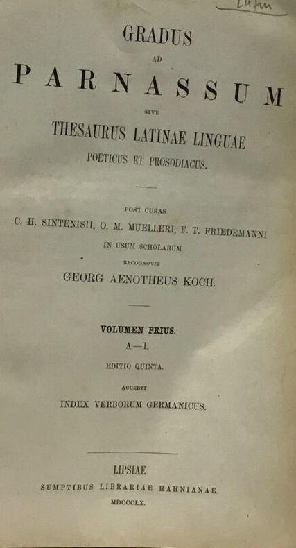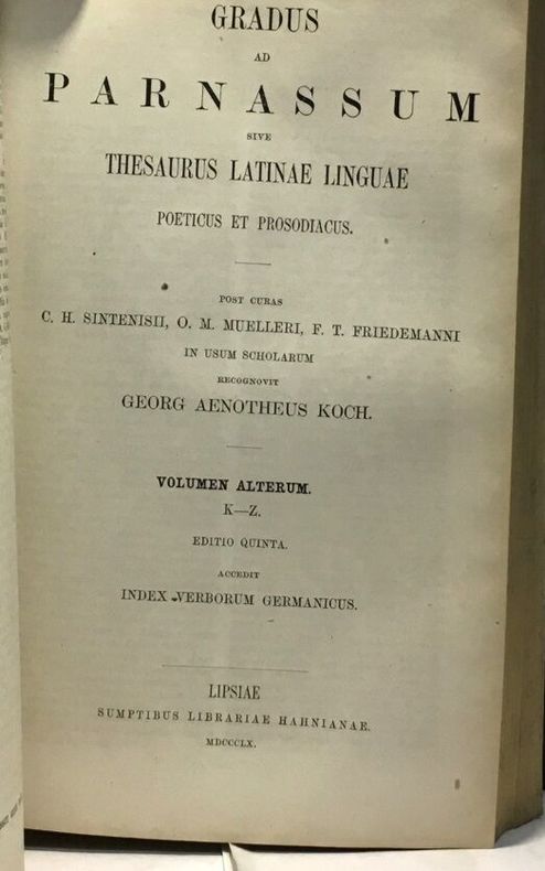 Lipsiae 1860 in8. 1860. Cartonné. Gradu ad parnassum sive thesaurus latinae linguae poeticus et prosodiacus - Volumen Prius + Volumen Alterum --- 2 tomes compilés en un volume
