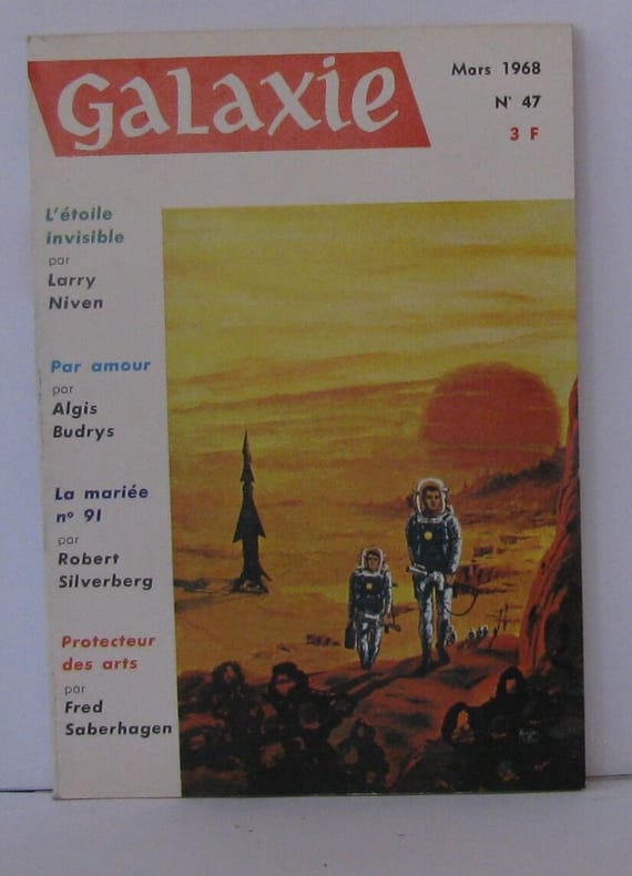 Au sommaire de ce numéro :L'homme-Psi, par George O. Smith - Protecteur des arts, par Fred Saberhagen - La mariée n°91, par Robert Silverberg - L'étoile invisible, par Larry Niven - Dieux des ténèbres et de la lumière, par Bruce McAllister - Le délégué du Guapanga, par Wyman Guin - Par amour, par Algis Budrys. PHOTOS sur DEMANDE. ...................... Photos sur demande ..........................