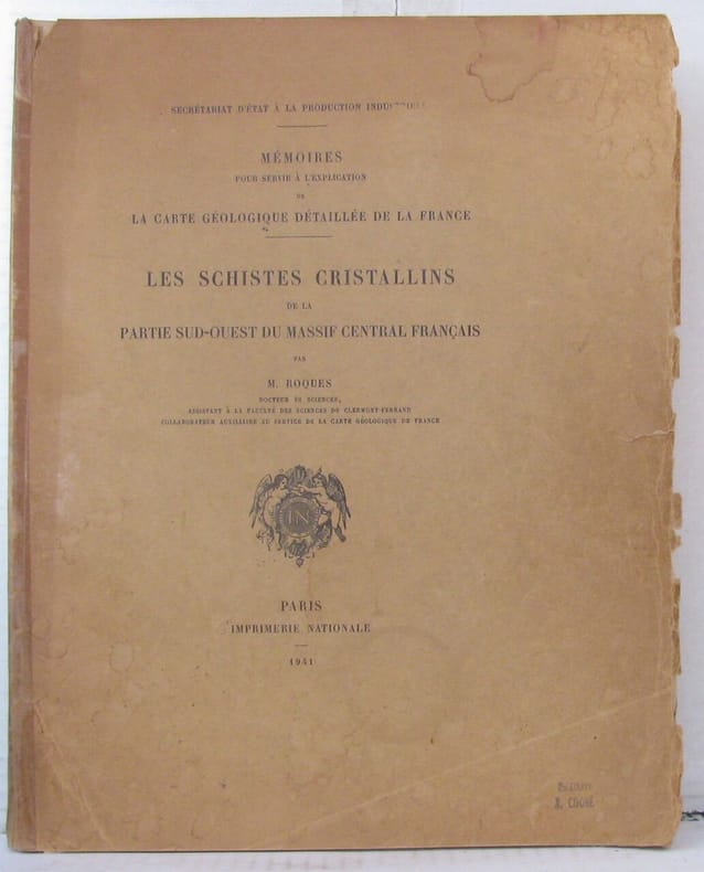 Imprimerie nationale 1941 527 + annexes pages in4. 1941. Broché. 527 + annexes pages. brochure rafistolée au scotch proprement au dos et en dernière de couverture intérieur très bon - collection de mémoires pour servir a l'explication de la carte géologique détaillée de la france