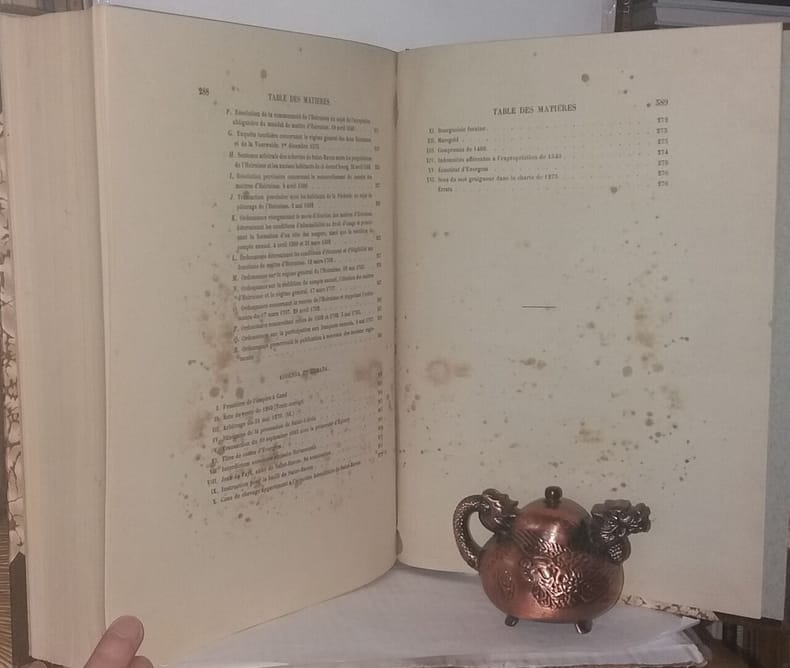 Brochure d'origine conservée brunie. texte en bon état malgré quelques rres rousseurs nombreuses en fin d'ouvrage sur la table des matières seulement