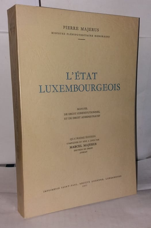 Imprimerie Saint-Paul 1977 407 pages in8. 1977. broché. 407 pages. Manuel de droit constitutionnel et de droit administratif 4ème édition complétée et mise à jour par Marcel Majerus docteur en droit avocat