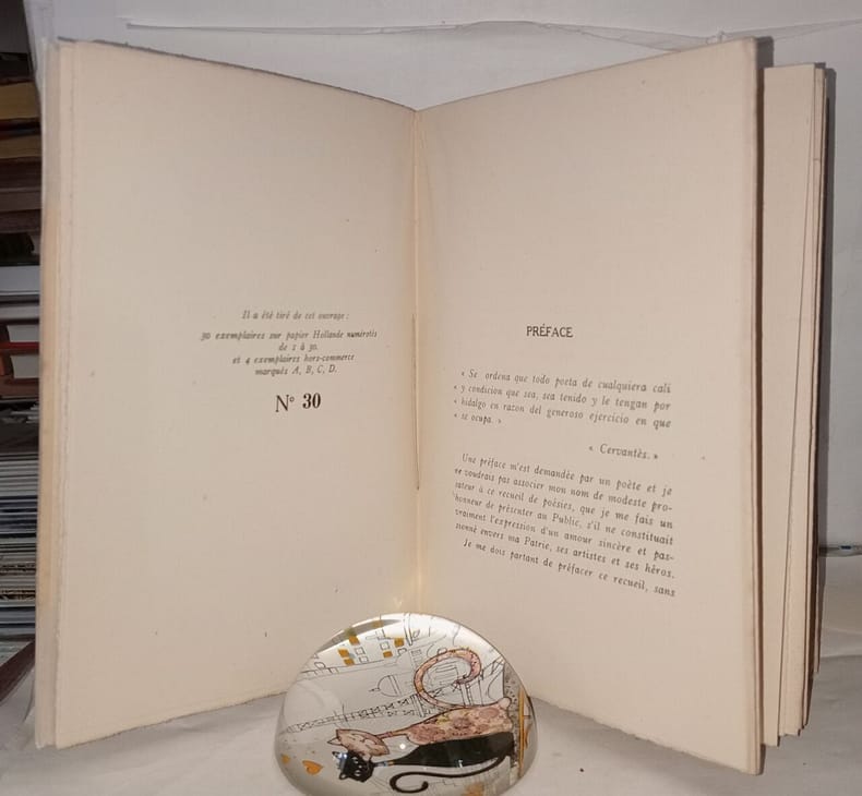 Exemplaire numéroté 30/30 sur papier Hollande. Bon état malgré petites rousseurs sur couverture et pages de garde intérieur en excellent état non coupé