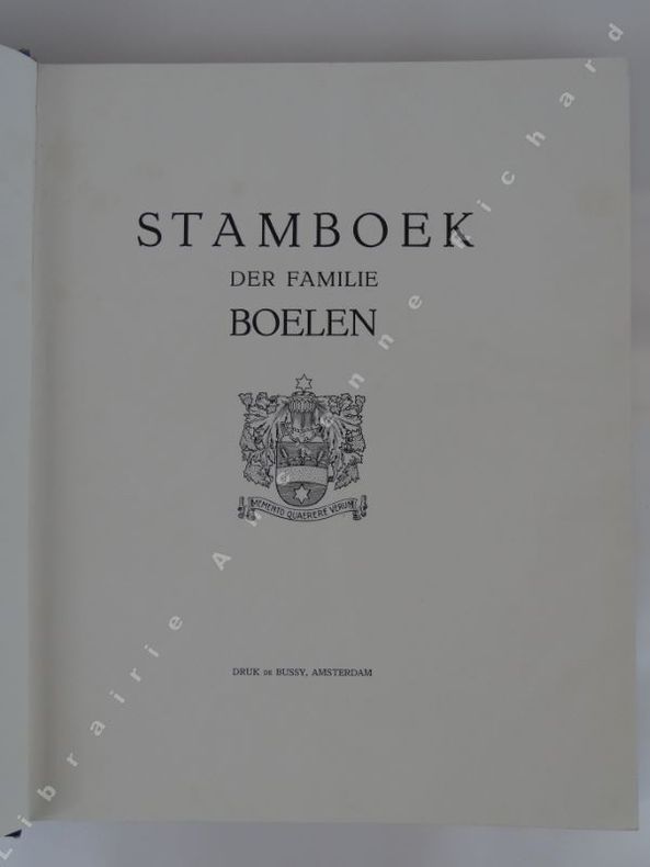 Amsterdam, Druk de Bussy, 285 x 220 mm., 248 pp., XII planches n/b dépl. : généalogie de la famille Boelen, reliure percaline bleue d'éditeur, traces d'usage sur plats, traces de plis sur premiers feuillets, coiffes frottées, assez bon état.