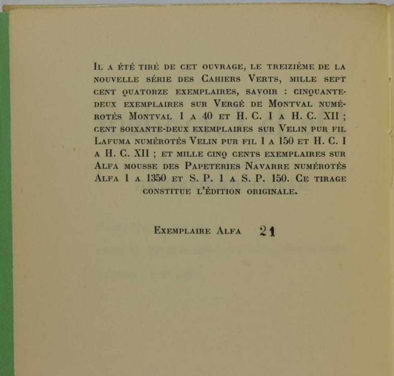 Collection "Les Cahiers Verts " N° 13.