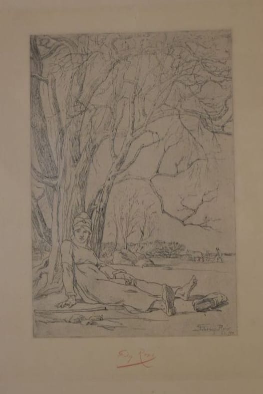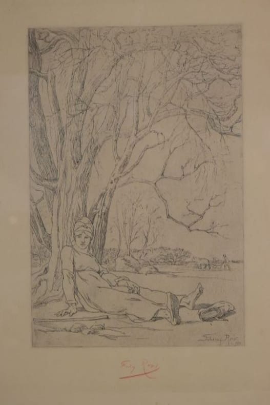 Une version réduite de cette gravure a servi de frontispice pour "J. F. Millet. Souvenirs de Barbizon" d'Alexandre Piedagnel.