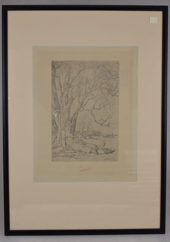 Eau-forte sur papier Japon, dessin 25 x 16.8 cm, cuivre : 31 x 24.2 cm, signée et datée dans le dessin et au crayon rouge dans la marge. Encadrement moderne. Parfait état.