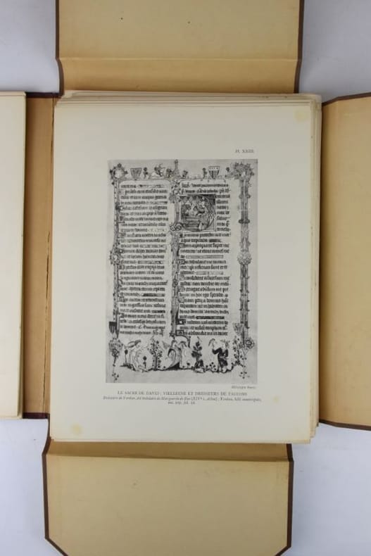 Paris, 1934. 6 volumes in-4 (330 x 252 mm), (3) ff., CXXXI-(1) pp. : Introduction, 352-(2) pp. + (3) ff. + 479-(3) pp. + (3) ff., 479-(3) pp. + (3) ff., 487-(3) pp. + (1) ff., VII-(1)-348 pp. (Index Général), (3) ff. Broché sous couvertures rempliées et papier cristal. Volume de planches : (1) f. blanc, XIII-(1) pp. : Table des planches, 139/140 planches n/b, il manque la planche n° 124, sous chemise demi-percaline à rabats avec lacets, plats empoussiérés, minime fente au mors sup. (3 mm), rares planches présentent de claires rousseurs dans les marges, non-coupé, traces de pli aux dos, dos insolés en tête et pied, vol. 1 charnière légèrement relâchée, bel état intérieur. Bon exemplaire.