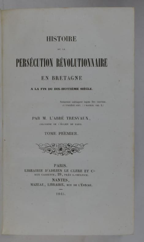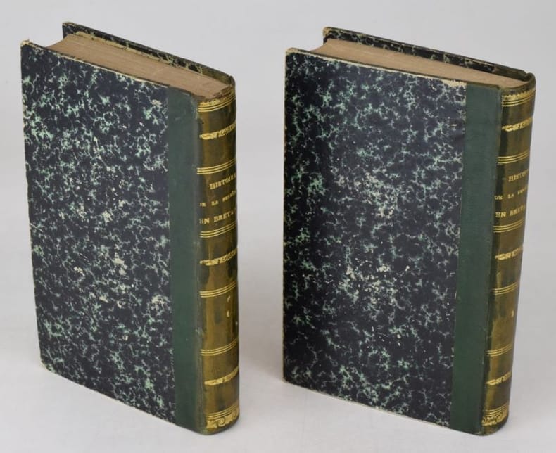 Paris, Nantes, Librairie d'Adrien le Clere et Cie, Mazeau, libraire 1845. 2 volumes 206 x 126 mm, XVI-554 pp. + (2) ff. faux-titre, titre, 550 pp. Reliure demi-basane, dos lisse orné de filets et de roulettes dorés, 2 coins ouverts, coupes, coins et plats frottés, une coiffe endommagée (avec manque de cuir), rousseurs sur gouttière et marge ext.
