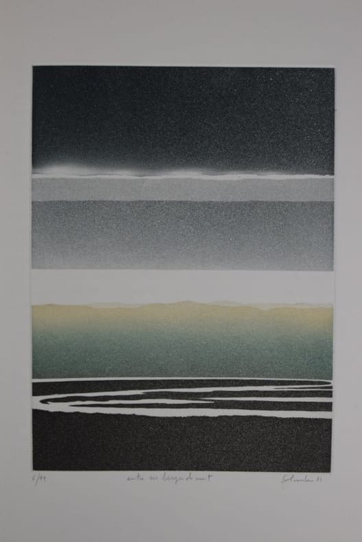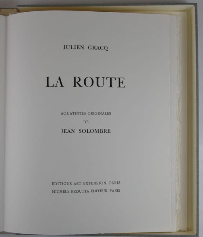 Paris, Éditions Art Extension, Michèle Broutta éditeur, 1981. 365 x 285 mm, (1) f. blanc, 21-(5) pp., (2) ff. blancs, 8 aquatintes originales numérotées, signées et certaines titrées de Jean Solombre. En feuilles sous chemise titrée à rabat, emboîtage cartonné d'éditeur. Tirage sur papier grand vélin d'Arches, à 121 exemplaires justifiés, 1 des 99 exemplaires numérotés de 1 à 99, ici n° 6, signé par l'auteur et l'artiste, l'artiste a en outre signé toutes les gravures. Très bel exemplaire.