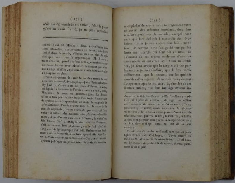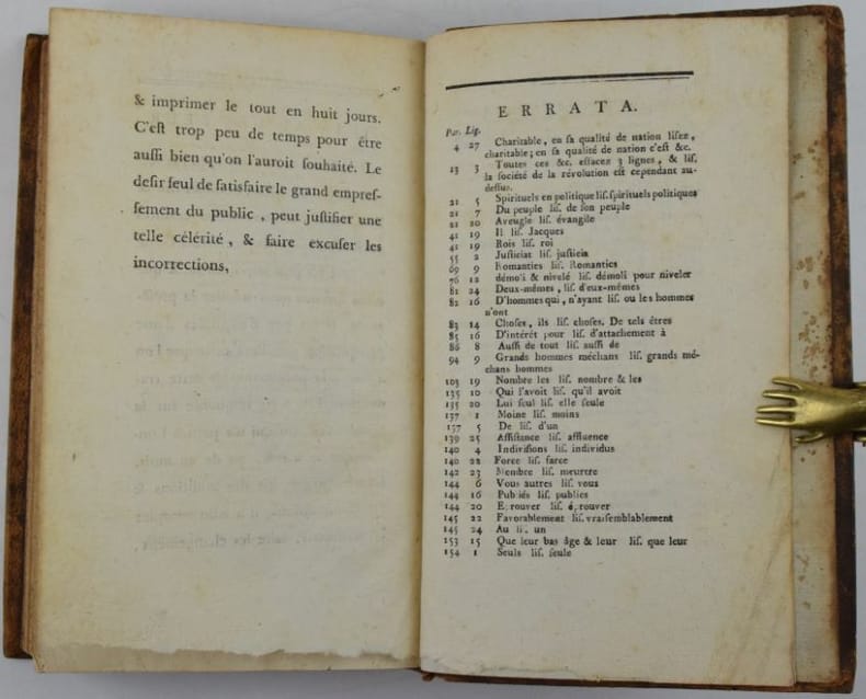 Paris, Londres, Chez Laurent fils, Chez Edward, (1790). In-8 (198 x 124 mm), VIII-536-(4) pp. Reliure veau marbrée d'époque, dos à nerfs orné de caissons dorés, étiquette de titre, tranches mouchetées, 2 coins frottés, coiffe sup. arasée, nerfs et dos un peu frottés, 1 trait (tache) au second plat, mors frottés, manque de papier (d'origine) marginale : 1 f., rares annotations (errata transcrits), trace de mouillure et décharge (second contre plat et garde), cachet ex-libris sur p. de titre.