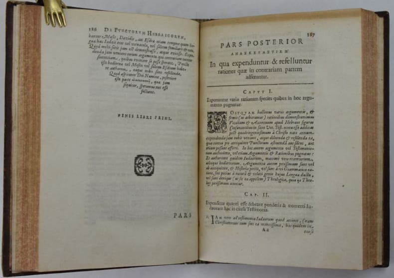 Lugduni Batavorum (Leyde), Iohannem Maire, 1624. In-4, (16)-332 (pour 330, pagination 145-146 omises)-(5, liste des chapitres)-(1, blanc) pp., préface de Thomas van Erpe. Ex-libris "J. J. Marcel P." au contreplat. Reliure de l'époque en veau marbré, dos orné de caissons dorés, roulette sur les coupes, coiffes absentes, 1 coin ouvert, dos et mors frottés, une fente de 2 cm au mors sup., intérieur en bel état.