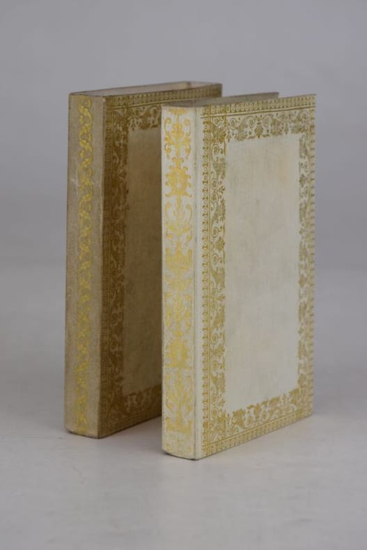 # ÉTAT: Coins lgt émoussés, rousseurs. petite dentelle int. dorée, filet doré en pointillé sur les coupes, dos à nerfs orné