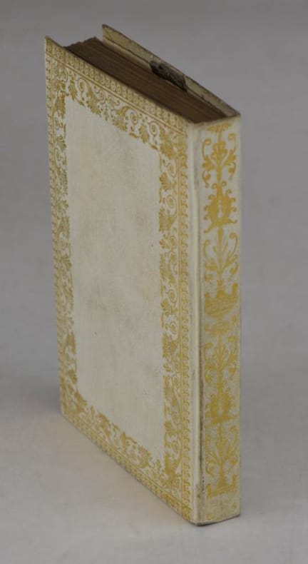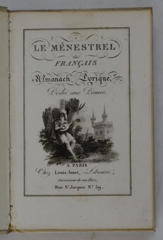 Paris, Louis Janet, (1819). In-16, (2)-160-(8, calendrier) pp., vignette gravée au titre et en tête de chaque cahier de musique. Reliure de l'éditeur en cartonnage blanc, dos orné de fleurons dorés, plats encadrés d'une roulette dorée, tranches dorées, étui décoré de même. Légères traces sur les plats, plus marquées sur l'étui, les dos sont grisés. (Grand-Carteret, 1864)