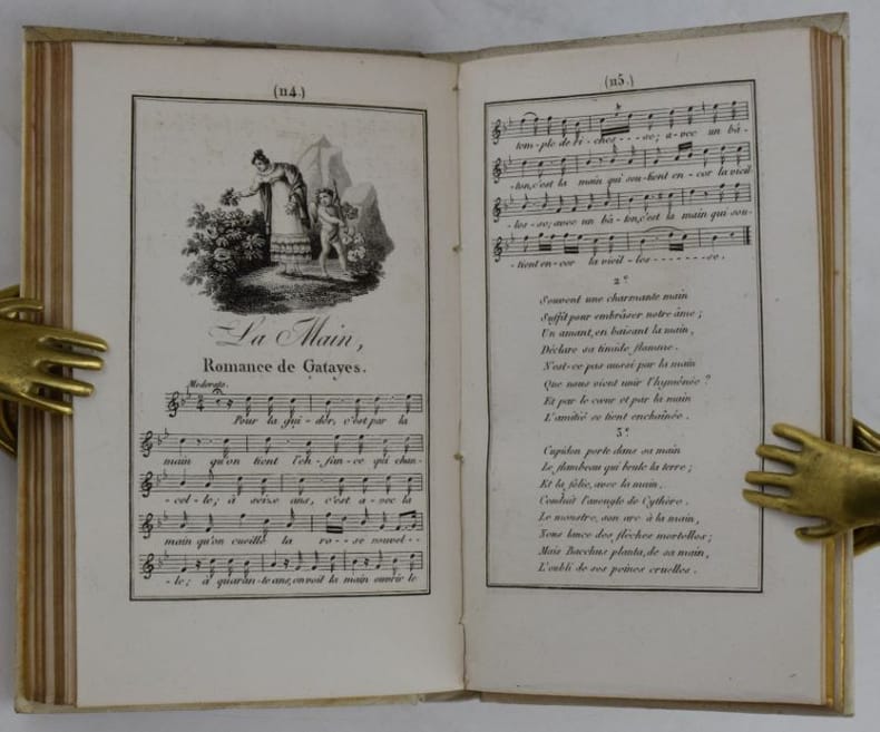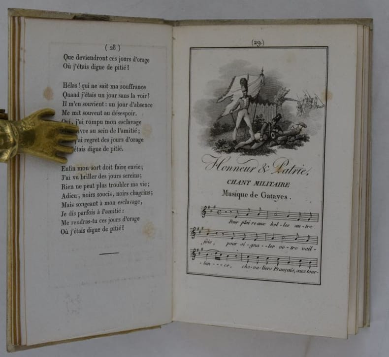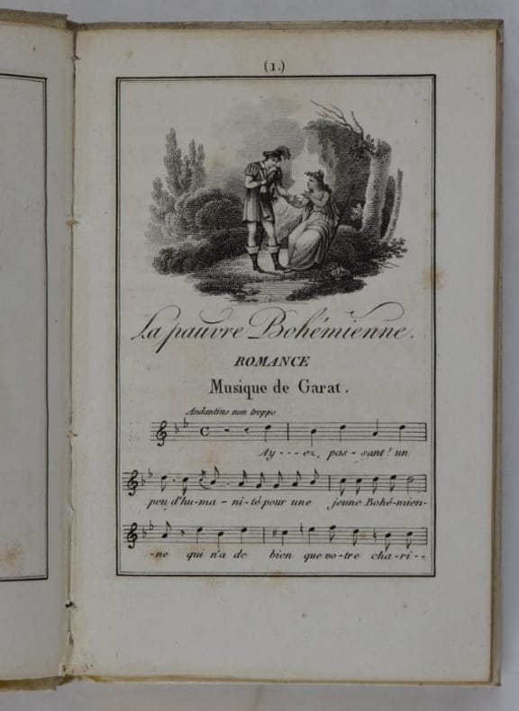 chansons avec musique gravée de Bouffet, Boieldieu, Champein, Gatayes, Goule, Champin, Lamparelli, Lelu, Lorin, Naderman, Pradher...etc..... Réf. bibl. : Grand-Carteret, n° 1864........bel Exemplaire....superbement relié..................en bon état (good condition).