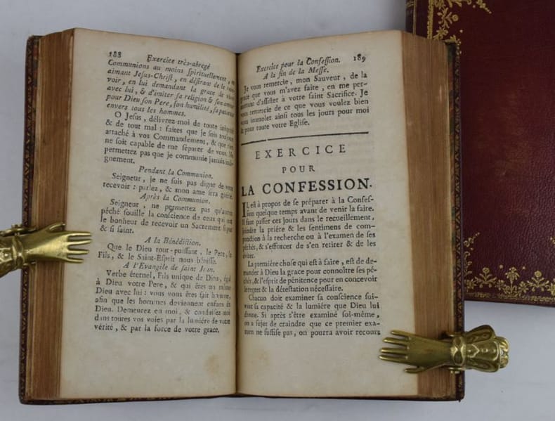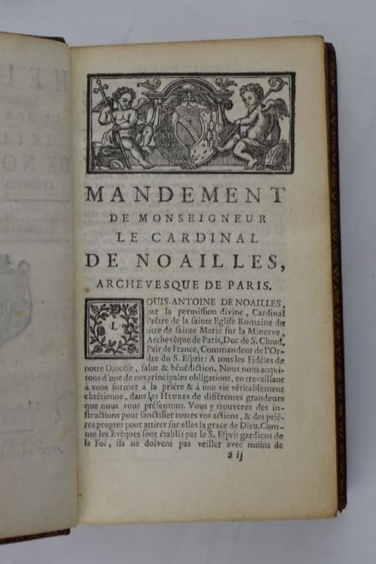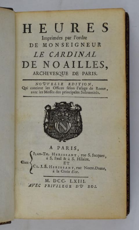 A Paris, chez Jean-Thomas Herissant, rue S. Jacques, à Saint Paul et à Saint Hilaire, A Paris, chez Cl. J. B. Herissant, rue Notre-Dame, à la Croix d'or Relié 1763 In-12 (10 x 17 cm), reliure plein veau, dos à 5 nerfs orné de dorures, tranches dorées, gardes couleur, 456 pages, avec quelques ruban signets (effilochés aux extrémités) ; manques de cuir aux coiffes et coins, frottements aux mors, nerfs et coupes, mors supérieur fendu en tête, assez bon état général. Livraison a domicile (La Poste) ou en Mondial Relay sur simple demande.
