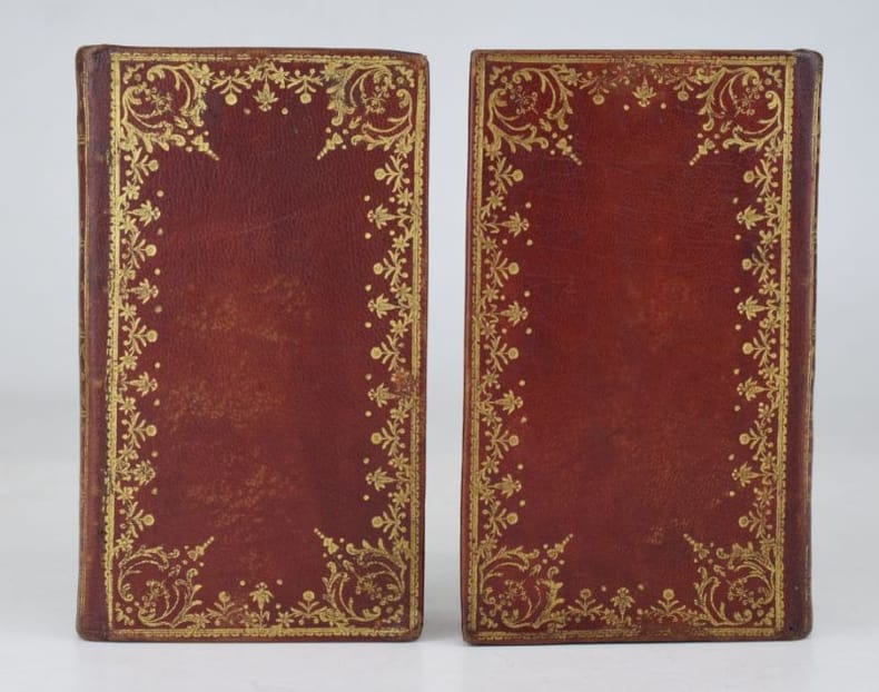 Paris, Jean-th. Herissant et Cl. J.B. Herissant, 1763. 2 volumes in-12, (24)-540 et 345-(3) pp. Reliure de l'époque en maroquin rouge, dos lisse orné de fleurons dorés, plats encadrés d'une dentelle aux petits fers, filets sur les coupes, roulette intérieure, tranches dorées. Trou de vers sur 4 feuillets en fin du tome 2 avec perte de quelques lettres, trous de vers en pied des dos, minimes manques à trois coins, bel exemplaire.