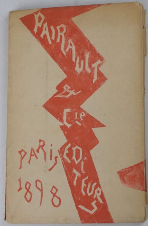 Paris, Pairault & Cie, 1898. 201 x 130 mm, (3) ff. : blanc, fx-titre, titre, 121-(5) pp. ÉDITION ORIGINALE. Tirage à 61 exemplaires numérotés, ex. n° 30. Broché sous couvertures illustrées rempliées, premier plat détaché, dos fendu avec des manques de papier, claires rousseurs sur les couvertures. RARE.