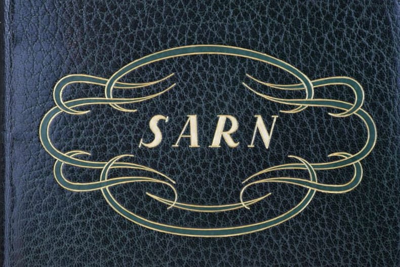 Henri Creuzevault (1905-1971), fils et frère de relieur, s'était établi en 1937 au 159 rue du Faubourg-Saint-Honoré. C'est là qu'il produisit ses reliures les plus remarquables, qui le firent classer parmi les meilleurs décorateurs de la période 1940-1960. Elles furent exécutées par d'excellents façonniers du moment. (J. Fléty, p. 50).