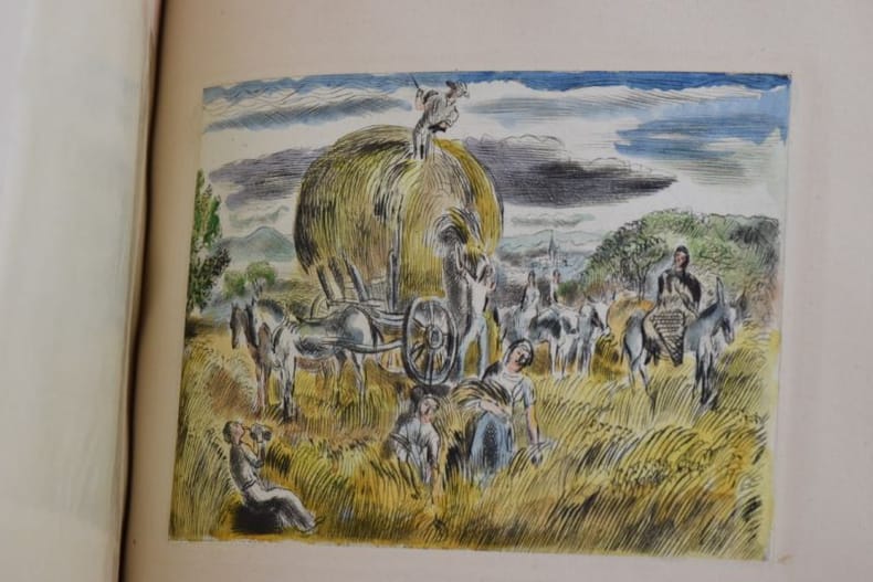 Paris Creuzevault 1948 In-4, en feuilles, couverture imprimée (emboîtage de l'éditeur).32 pointes sèches originales par Hermine David, dont une sur la couverture, un frontispice, une vignette de titre et 29 en-têtes. Tirage limité à 240 exemplaires numérotés. Un des 200 exemplaires sur pur chiffon de Lana.