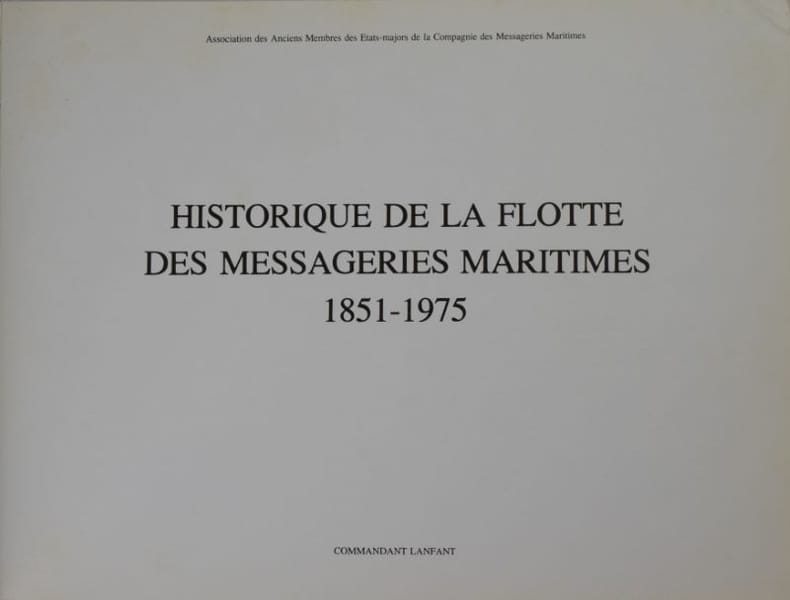 Commandant Lanfant, 1979. 219 x 290 mm, 277-(5) pp., illustrations photos n/b, joint : "Supplément à l'Historique de la flotte des messageries maritimes. Joint : (8) ff., illustrations photos n/b : Corrections et Additions à apporter à l'édition de 1979." Reliure d'éditeur toile noire, premier plat illustré d'un écusson doré, dos insolé, coutures relâchée, traces d'usage. Tirage à 2000 exemplaires numérotés, ici n° 0016.