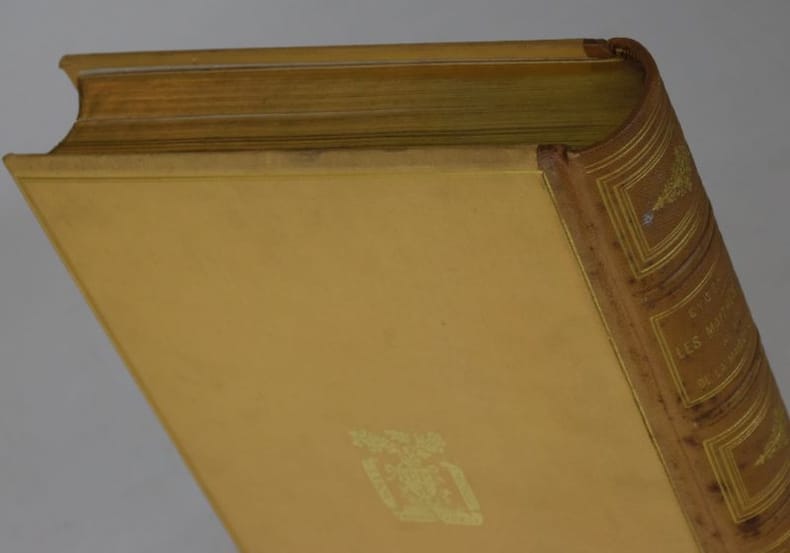 Paris, Librairie Plon, Nourrit et Cie, Imprimeurs-Éditeurs, 1887. In-4 (306 x 220 mm), (3) ff. : blanc, faux-titre, titre, IV-439-(1) pp., 54 planches d'illustrations n/b et bistre : 7 eaux-fortes et 15 dessins de Paul Le Rat, 18 héliogravures de Dujardin, 16 héliotypies de A. Quinsac, protégées par serpentes, 3 fac-similes d'autographes. Reliure demi-chagrin d'éditeur, dos orné de caissons dorés, plats toile, encadrement double filet doré, premier plat illustré d'un médaillon en relief, vignette dorée au dos, toutes tranches dorées, plats empoussiérés, taches brunes sur cuir, envoi de l'auteur sur premier feuillet blanc. Bel exemplaire