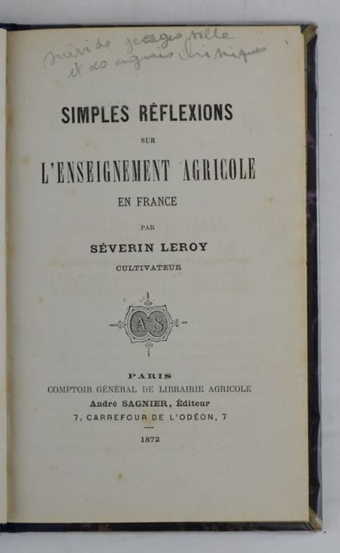Paris, Comptoir Général de la Librairie Agricole, André Sagnier éditeur, 1872 et Août 1871. 2 titres en 1 volume in-12, 88-(2) pp. et 85-(3) pp. Reliure de l'époque demi-percaline. Bel exemplaire.