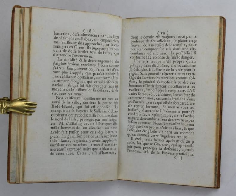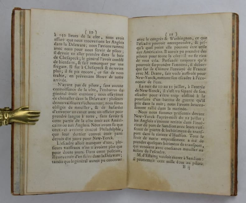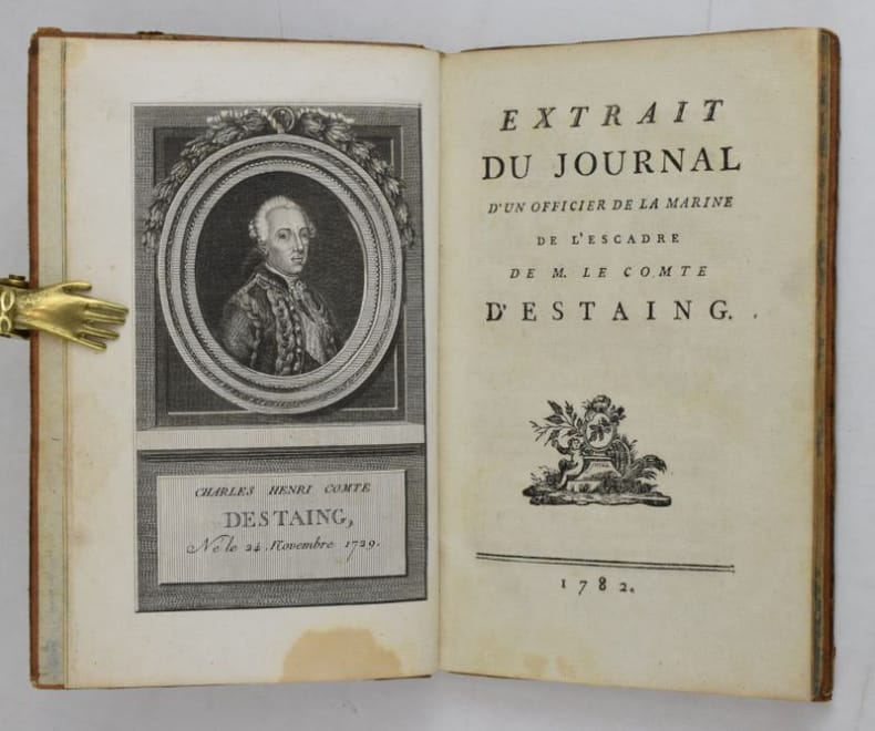 Une des éditions publiée la même année que l'originale. Elle relate les péripéties de l'escadre française, conduite par le comte d'Estaing, envoyée en aide aux insurgents américains en 1779. "Ouvrage destiné à jeter le discrédit sur la conduite de d'Estaing devant Savanaah." [Polak, Bibliographie maritime française, 3271].