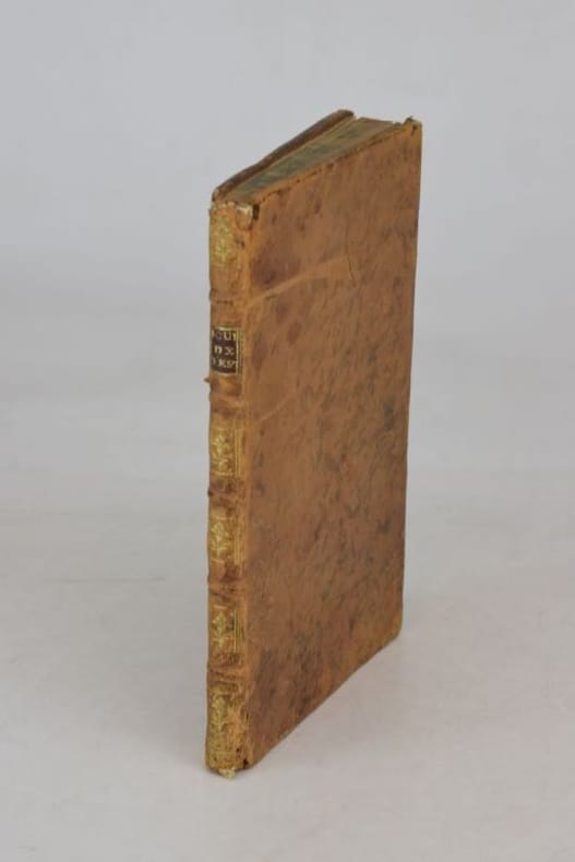 S.l., s. n., 1782. In-8, 126 pp., portrait gravé en frontispice. Reliure d'époque en veau marbré, dos orné de fleurons dorés, manques de cuir aux coiffes et aux coins, épidermures aux plats, tache brune en marge inférieure du frontispice et de trois feuillets, un feuillet replié avant l'impression.