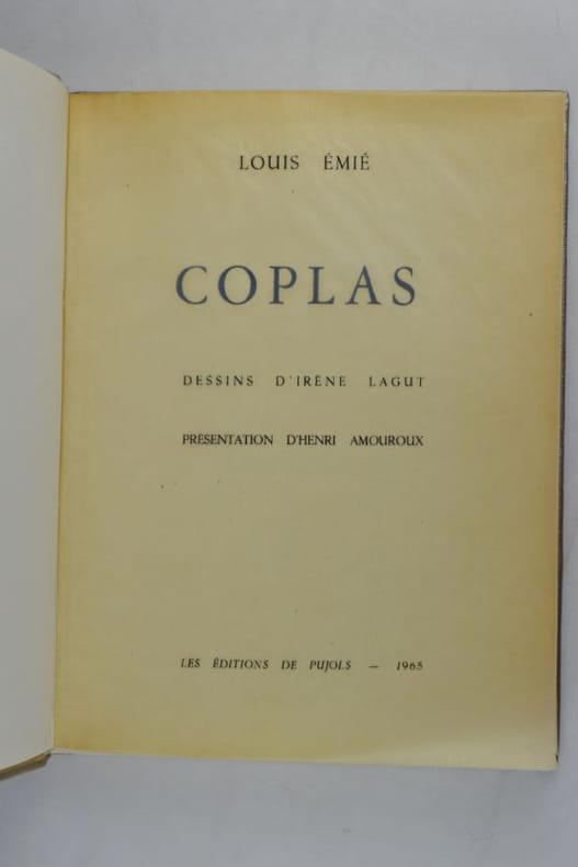 "L'Académie des Jeux Floraux a décerné, sur manuscrit, le Prix Jeanne-Marvig 1965 aux "Coplas" de Louis ÉMIÉ."