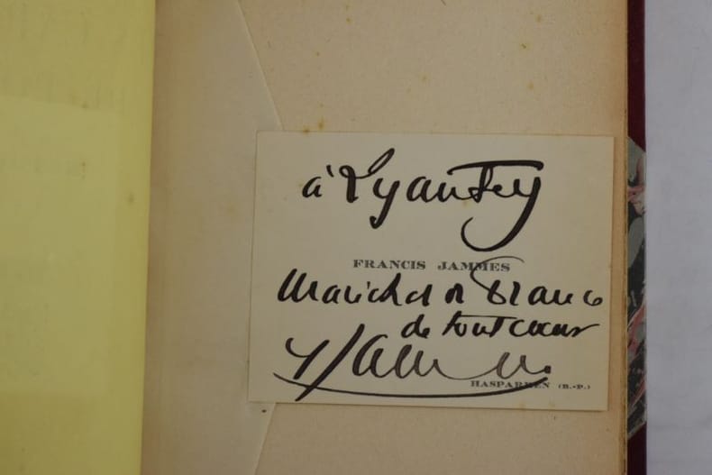 Paris, Plon-Nourrit et Cie, 1923. 182 x 120 mm, (3) ff., 212-(4) ff. Reliure demi-chagrin à coins, dos à faux-nerfs orné de fleurons dorés, chiffre du maréchal Lyautey en pied du dos, couvertures conservées, dos insolé, tache au premier plat, 2 coins légèrement frottés, piqûre de rousseurs sur première de couverture, décharge sur deuxième de couverture. Envoi au maréchal Lyautey sur carte de visite monté sur onglet.