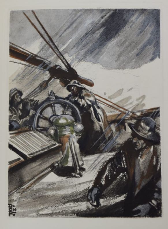 Paris, Librairie de la Revue Française, s.d. 202 x 147 mm, (3) ff. : blanc, faux-titre, titre, illustr. couleurs en frontispice, 215-(6) ff. Broché sous couvertures rempilées, première de couverture impr. bicolore, vignette d'illustration, claires rousseurs en haut du dos, un pli angulaire (première de couverture). Tirage à 1100 exemplaires numérotés, 1 des 910 exemplaires sur vélin d'Arches, numérotés de 191 à 1100, ex. n° 205. Bel exemplaire.