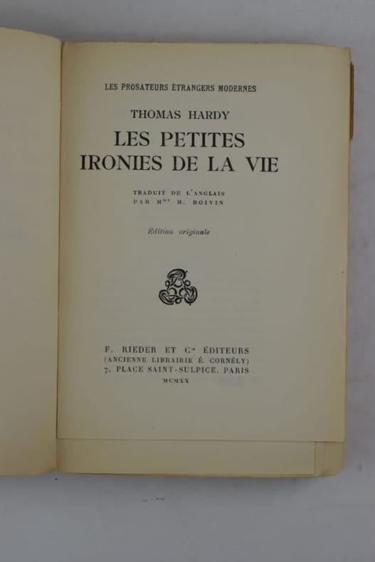 Paris, F. Rieder et Cie (Ancienne Librairie É. Cornély), 1920. 198 x 130 mm, 300-(4) pp. Broché, ex. à toutes marges, dos insolé, petits défauts au dos, couvertures et dos empoussiérés, couvertures détachées en haut et en bas, exemplaire à toutes marges. Tirage à 437 exemplaires, 1 des 430 exemplaires sur vergé pur fil numérotés de 31 à 430, n° 188.