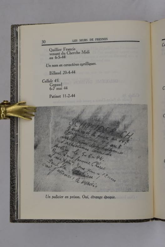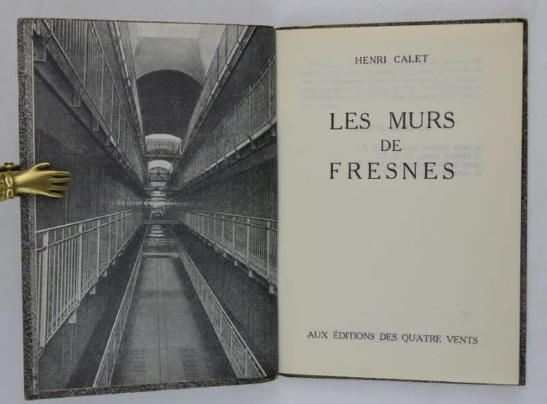 ed. des Quatre vents 1945 in-8 cartonnage ed., H.C. collecte les graffitis sur les murs de la prison Fresnes avec certains photographies par J. GERARD, BERNES, MAROUTON. Un livre bouleversant_! Patrick Modiano, dans le Cahier de l’Herne à lui consacre parle de l’importance de ce livre et il y a un lien de parente evident chez ces deux auteurs dans cette volonte de recueillir les traces de destins anonymes, 1er mille