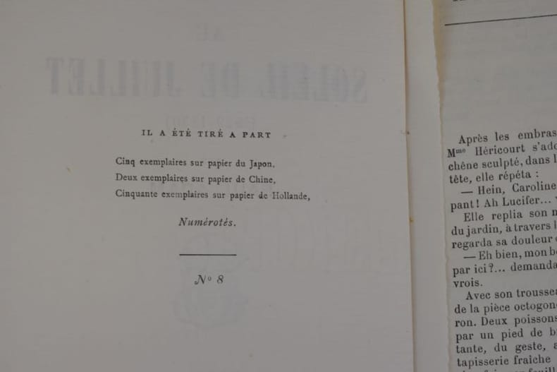 Paris, Société d'Éditions Littéraires et Artistiques, Librairie Paul Ollendorff, 1903. 195 x 145 mm, (3) ff. : blanc, faux-titre, titre, 532 pp. Broché, sous étui cartonné, dessous de l'étui frotté, dos insolé, traces d'usage aux couvertures, première de couverture détachée, décharges aux premiers et derniers feuillets. Exemplaire à toutes marges et non-coupé au-delà des ff. de titre, ex. numéroté sur papier Hollande : Il a été tiré à part 57 exemplaires dont 50 sur papier de Hollande, ici n° 8. Bon exemplaire. Édition originale.