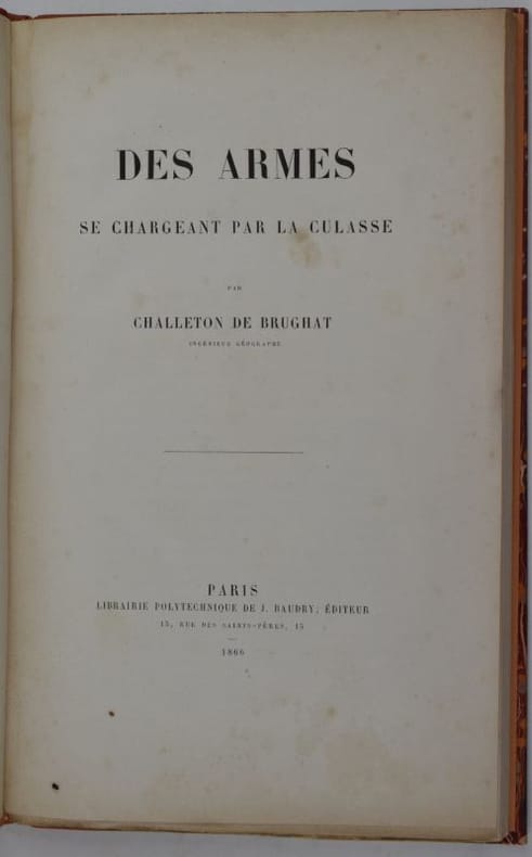 Paris, Librairie Polytechnique de J. Baudry, 1866. In-8 (247 x 150 mm), (2) ff., 92 pp. Reliure demi-chagrin, couvertures conservées, couvertures doublées, trace de pli (quatrième de couverture), manque de papier (première de couverture), couvertures empoussiérées, trace de pli angulaire aux derniers 20 feuillets, rares claires rousseurs. Bon exemplaire.