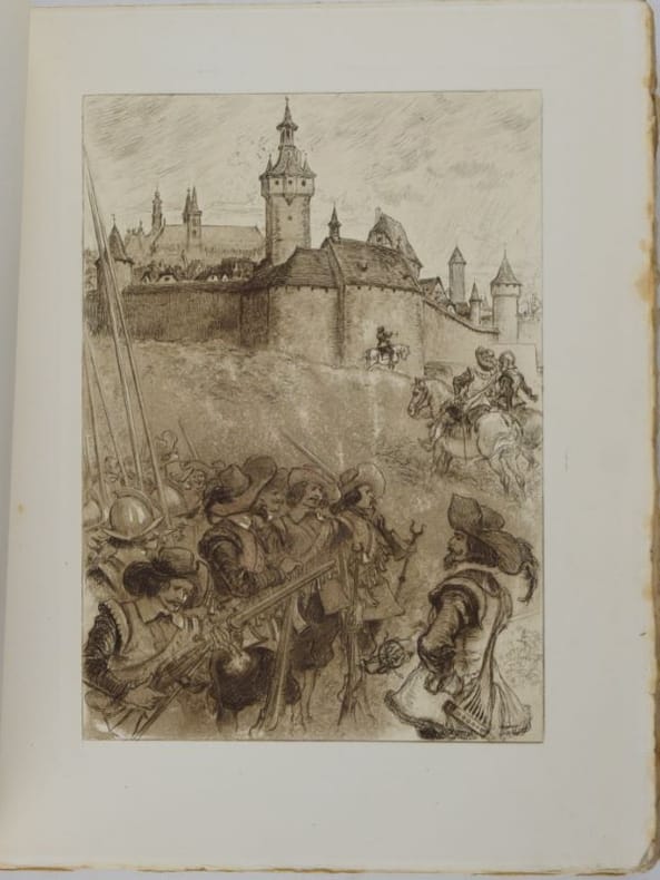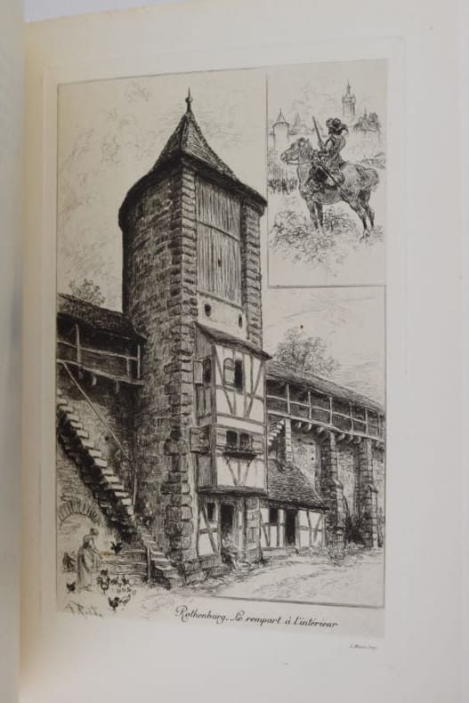 Paris Edmond Richardin 1910 In-4, bradel demi-vélin, plats de papier marbré; doublures et gardes de papier crème, tête dorée, non rogné, couverture illustrée.Edition originale illustrée par l'auteur de 14 eaux-fortes originales hors texte et de 14 compositions reproduites in texte. Tirage limité à 285 exemplaires. Un des 220 exemplaires numérotés sur vélin à la cuve.