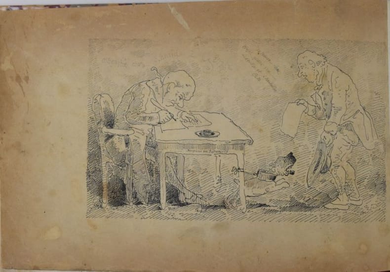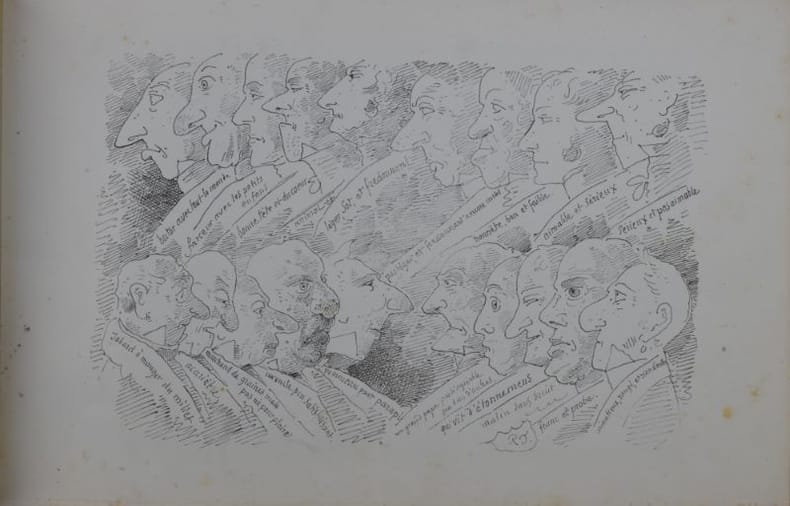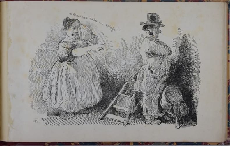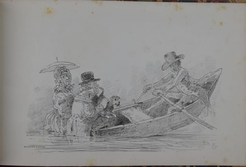 Édition originale rare. L'ouvrage se compose de 12 paysages et 12 caricatures. Mirabaud p. 62; Lonchamp 2933; Suzannet 123 et 124; Cailler 36A.