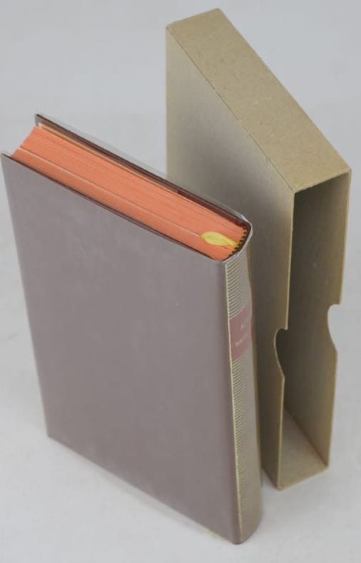 S.l. (Paris), NRF / Gallimard, s.d. (1987). Petit in-8°, pleine peau d'éditeur brune, dos lisse orné de titre et fers dorés, rhodoïd, tranchefiles, signet, tête orange, emb. pelliculé illustré.