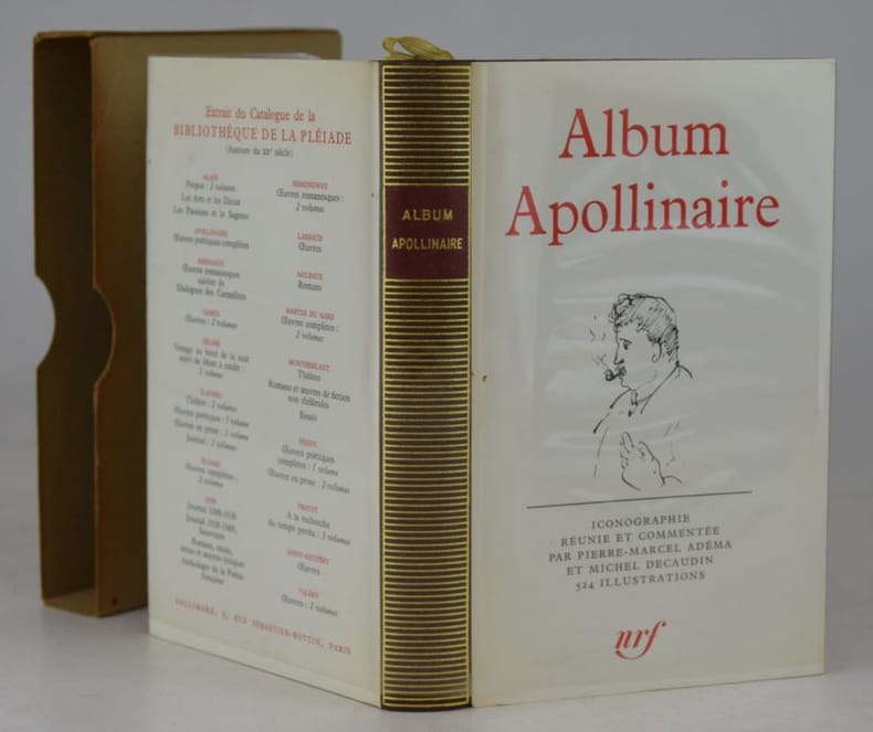 Paris, nrf, Gallimard, "Bibliothèque de la Pléiade", 1971. 168 x 105 mm, 315-(5) pp., 524 illustrations n/b in-texte et en pleine page, iconographie réunie et commentée par Pierre-Marcel Adéma et Michel Décaudin. Reliure pleine basane havane, dos lisse orné de filets dorés, sous jaquette, rhodoïd et étui, début de fente à l'étui, inscription au crayon gris sur l'étui. Très bel exemplaire.