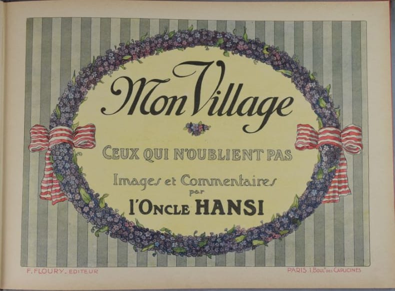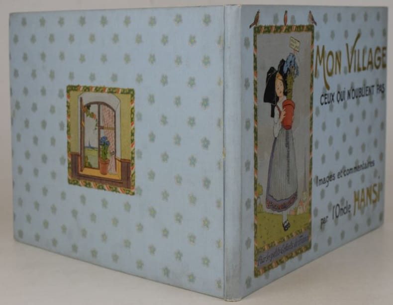Reliure signée Engel. Premier tirage du célèbre ouvrage de Hansi entièrement illustrée en couleurs. Exemplaire à l'état de neuf.
