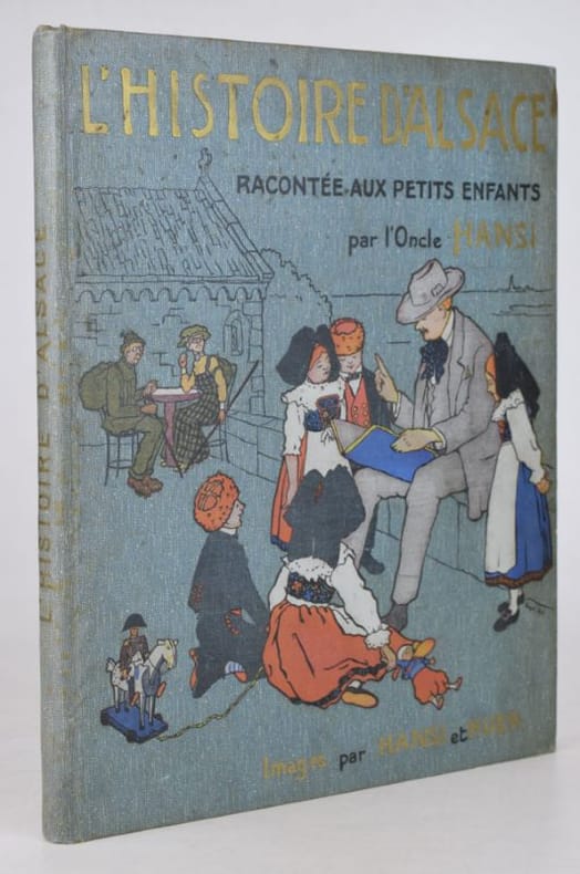 Reprint. A nice copy of this reprint. Sound but slightly darkened hardback illustrated boards. Slight rubbing to the edges, but still strong. Inside, the stiff paper is somewhat darkened and brittle. The first few pages have been reinforced in place with archival tape. 104 pages. A revised edition with a couple of extra pages of text and a final illustration dated 1915. 35cm x 28cm. Jean-Jacques Waltz was born in Colmar in 1873. He was a French caricaturist known for his satirical work particularly depicting German tourists. This book illustrates his pro-French Alsatian feelings on Germany's annexation of the Alsace region. Hansi was imprisoned several times by the German authorities, culminating in a one-year prison sentence in 1914. .