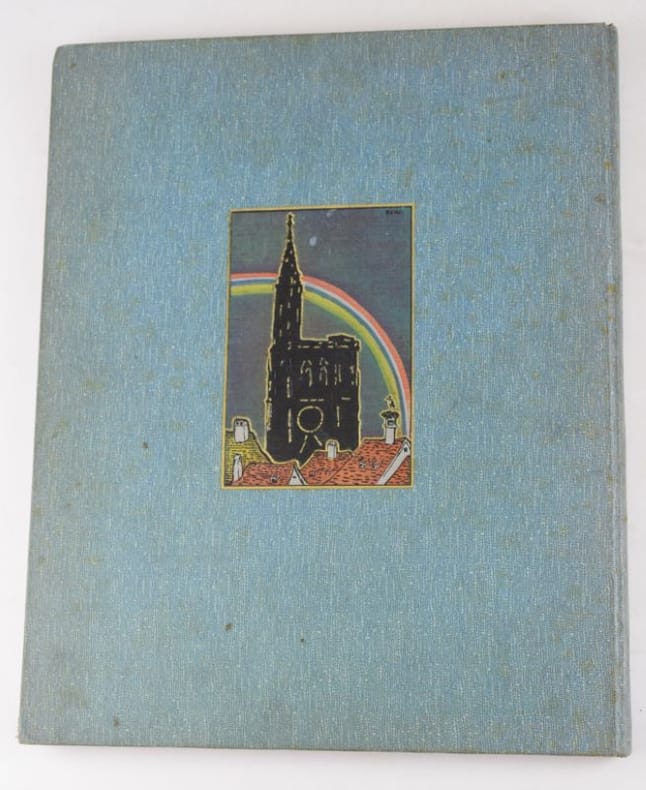 H.Floury éditeur 1915. Grand In-4 cartonnage éditeur de 104 pages au format 28 x 4 x 35,5cm. Couvertures pleine toile bleue illustrées en couleurs ( 1er et 4 ème plat ). Dos rond avec titre gravé et doré. Tête et tranches rouges. Frontispice, textes, postface et magnifiques illustrations de Hansi, aidé par Georges Huen. Tirage sur couché. Dos légèrement pâli. Infimes frottis aux coins. Intérieur très frais. Deuxième édition, augmentée de 4 pages. Rare exemplaire, surtout dans un tel état de fraicheur.