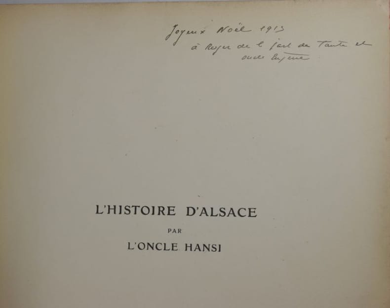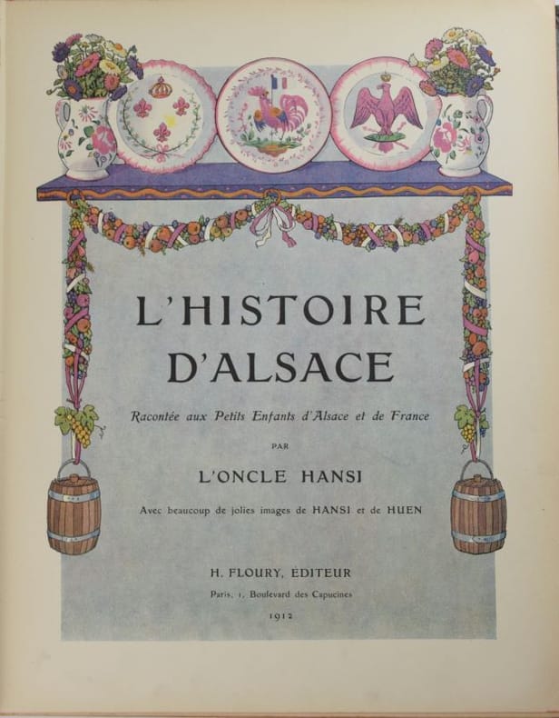 " L'Histoire d'Alsace racontée aux Petits Enfants " confirme le succès national de Hansi, désormais considéré comme le symbole de la résistance alsacienne par le mouvement des "revanchards” animé par Maurice Barrès et Paul Déroulède. Bon état d’occasion