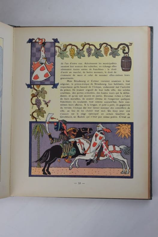 Paris, H. Floury, impr. Kapp, à Paris 1913 In-folio 34 x 27,5 cm. Broché, couverture d’attente, 100 pp., nombreuses illustrations en couleurs de Hansi et de Huen. Intérieur frai avec rousseurs marginales.