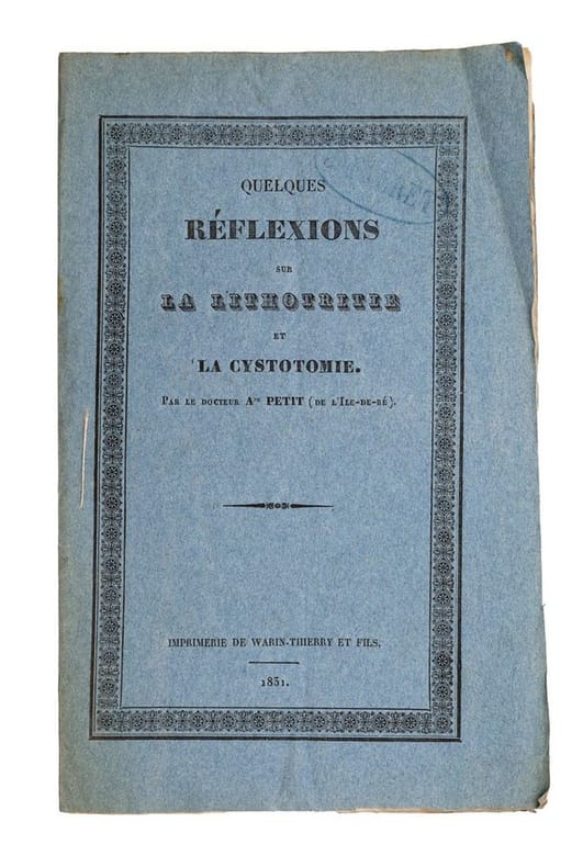 [Paris] imprimerie de Warin-Thierry et fils, 1831, in-8, 19 pp, Broché, couverture imprimée de l'éditeur, Tiré à part, tel que paru, extrait de l'Abeille médicale (décembre 1830). L'auteur était médecine à l'Île-de-Ré. Tampons ex-libris du psychiatre J[ules] Falret. Bon exemplaire, malgré des rousseurs. Couverture rigide