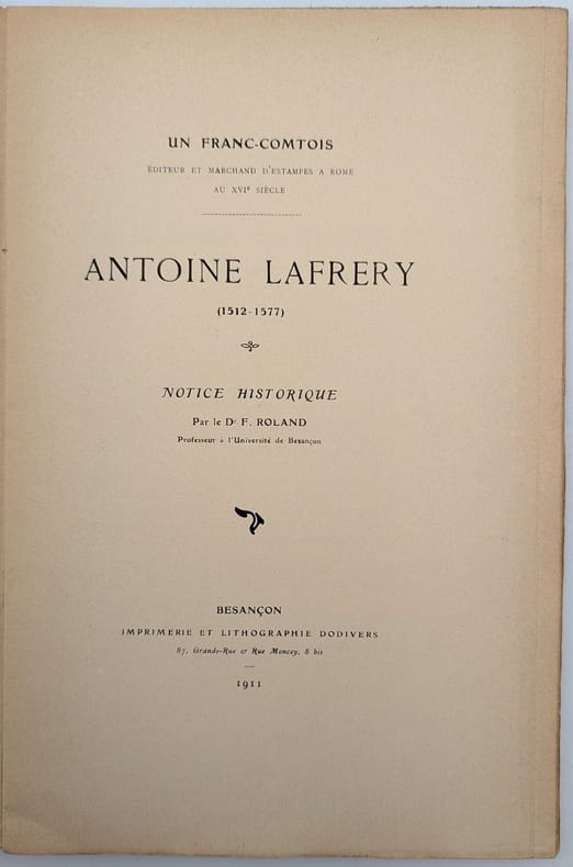 Besançon, Dodivers, 1911 In-8 broché, 88 pp., 5 planches dont 2 à double pp., pièces justificatives en latin.