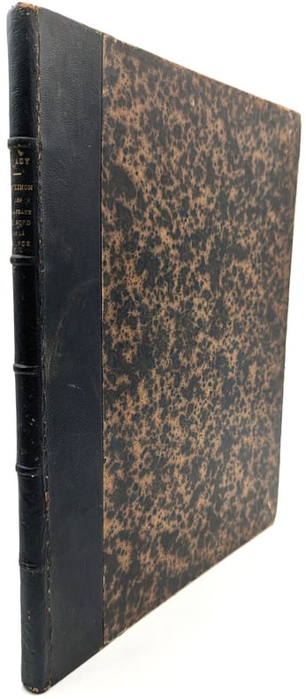 Paris, F. Savy, 1878, in-folio, 72 pp. 1 carte et 10 planches, Toile noire, dos long, titre doré, chiffre doré B.C. en queue du dos, Édition originale et unique de ce mémoire relatif au milieu géologique de découverte d'artefacts préhistoriques. Cet exemplaire est enrichi d'un envoi autographe signé de l'auteur à Monsieur de Lapparent. Albert de Lapparent (1839-1908) était un géologue français qui, dans ses premières recherches, s'était occupé de fouilles géologiques dans le Nord de la France, régions qui intéressent ici notre auteur. Elle est illustrée d'une carte des gisements étudiés, d'un tirage photographique argentique de la coupe d'une sablière de Saint-Acheul et de 9 planches lithographiques représentant les silex taillés découverts. Ernest d'Arcy était un préhistorien de premier plan, qui vendit notamment sa collection au Musée des Antiquités nationales, actuel Musée d'Archéologie nationale. Reliure défraîchie mais solide, 1ère garde débrochée, petit manque sans atteinte au 1er f. bl, pâles mouillures marginales sans atteinte, rares et minuscules rousseurs. Cachets de l'Institut catholique de Paris. Couverture rigide